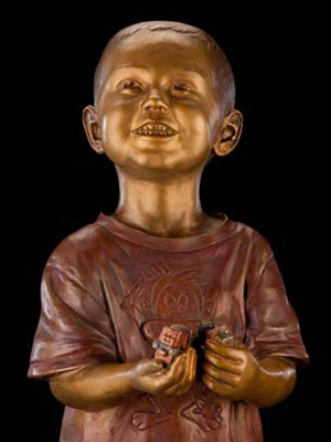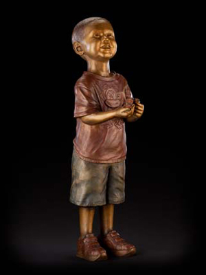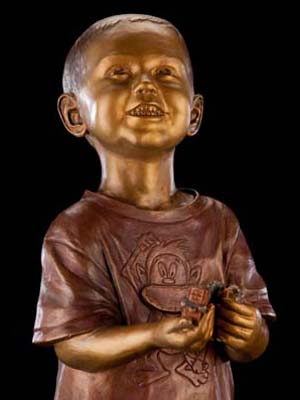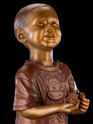 "Will and His Trains" — a life-size bronze portraitof innocence, longing, and personal toys (trains)