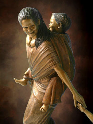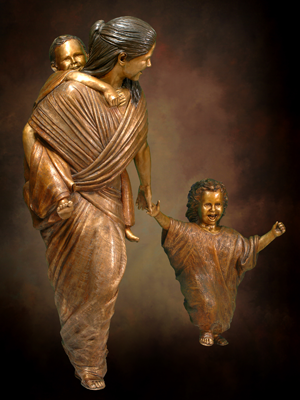 Bronze of "Traditional Teen" carrying a little boy andjoined by "Toddler" adds perspective to Christ scenes